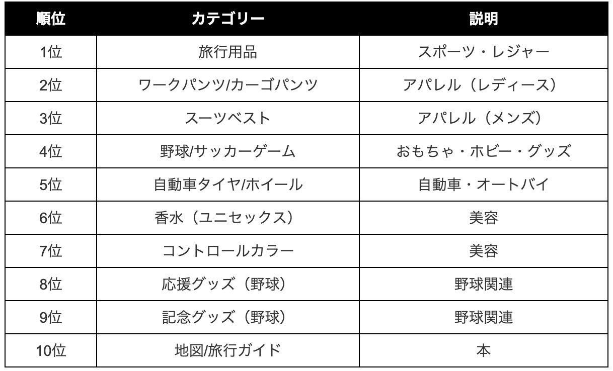 また、今年3月に開催された2023 WORLD BASEBALL CLASSIC™での日本の優勝により、TOP10には野球関連でゲームや応援グッズ、記念グッズなどもランクインしました。
