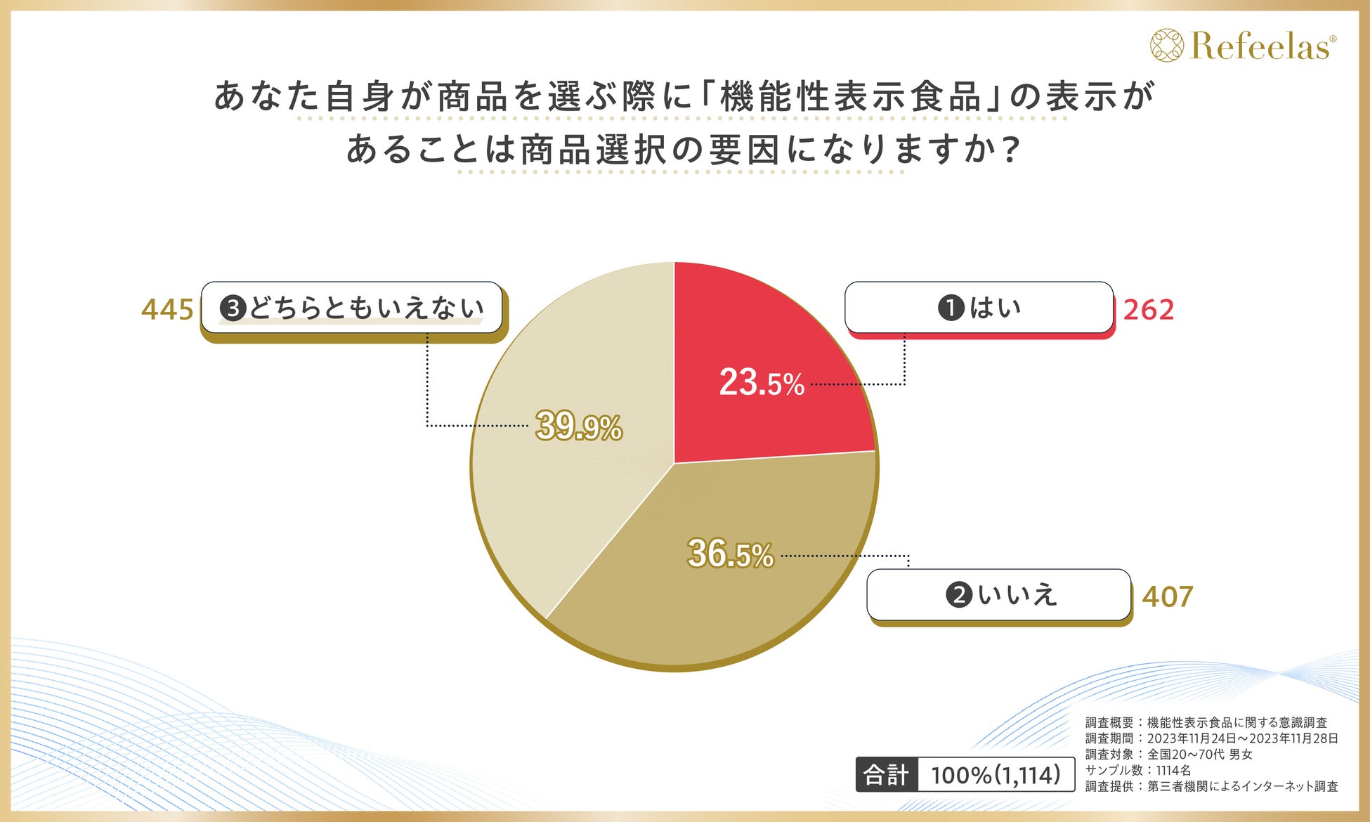 本調査で約4人に1人が商品を選択する上で、機能性表示食品という表示を参考にしていると判明しました。