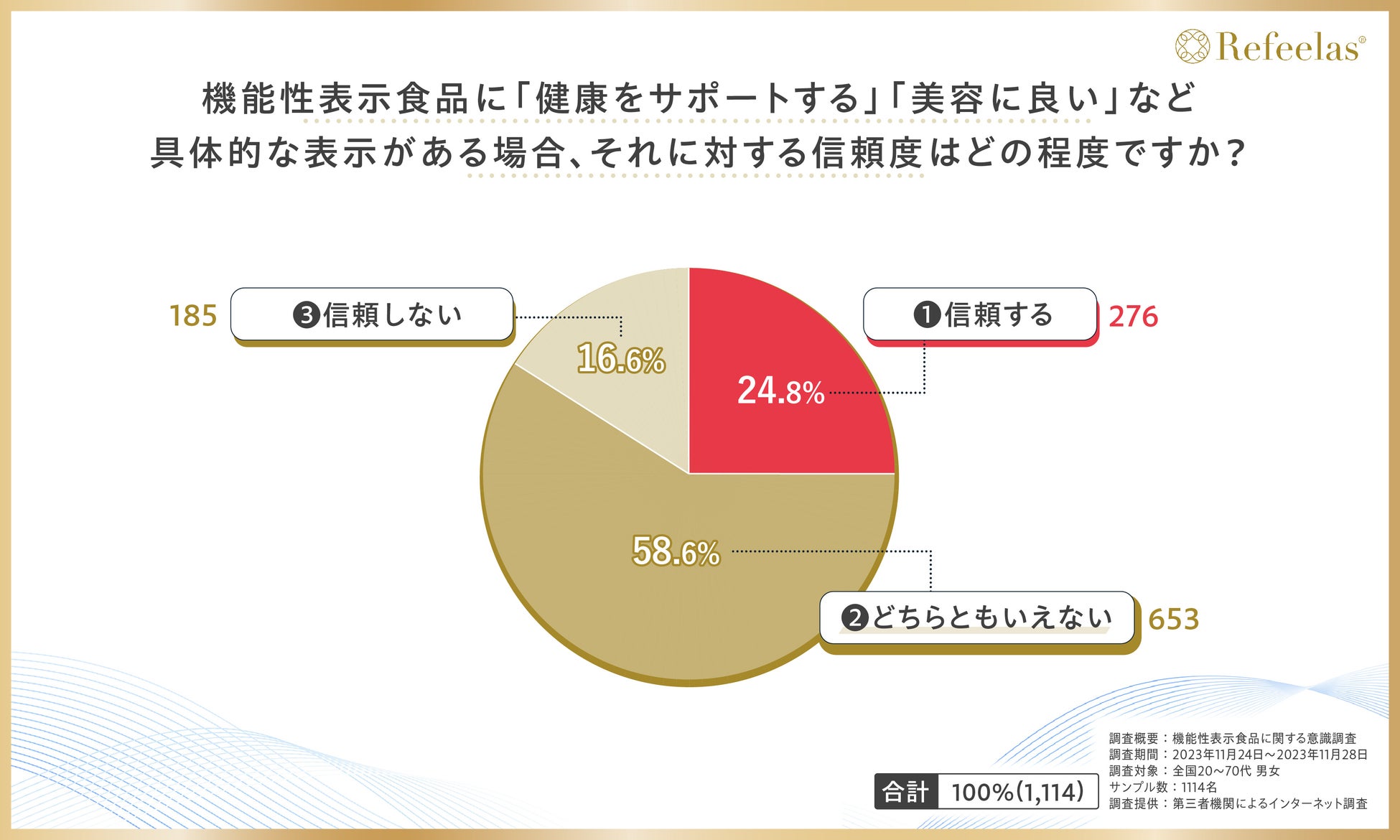 機能性表示食品の表示を商品選択の参考にしない方も、具体的な「健康をサポートする」「美容に良い」などの記載は信頼しているようです。