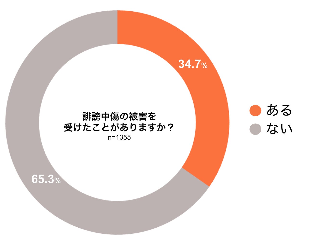 | 被害経験の有無 | 誹謗中傷されたことが「ある」は34.7% |