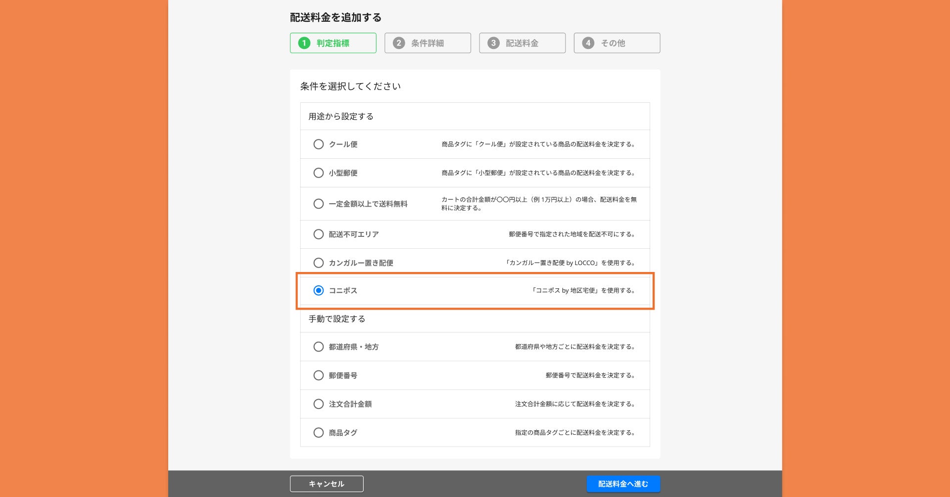 本連携は「配送料カスタム.amp」の管理画面上に表示されるステップに沿って、簡単に設定可能です。わかりやすい説明と直感的なインターフェースが提供されているのも特徴で、期間限定で無料での導入サポートも実施しております。