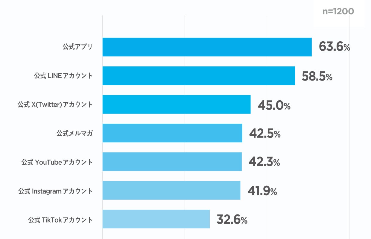 - 企業公式アカウントをフォローもしくはDLしたことがある媒体は、公式アプリが64%で最多、続いて、公式LINEアカウントが59%に