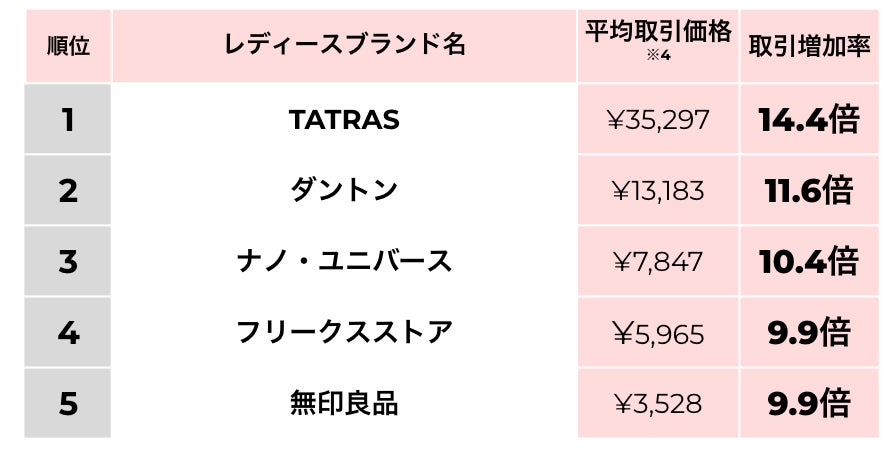 【ジャケット・アウター】取引数上昇ブランドTOP5(レディーズ)