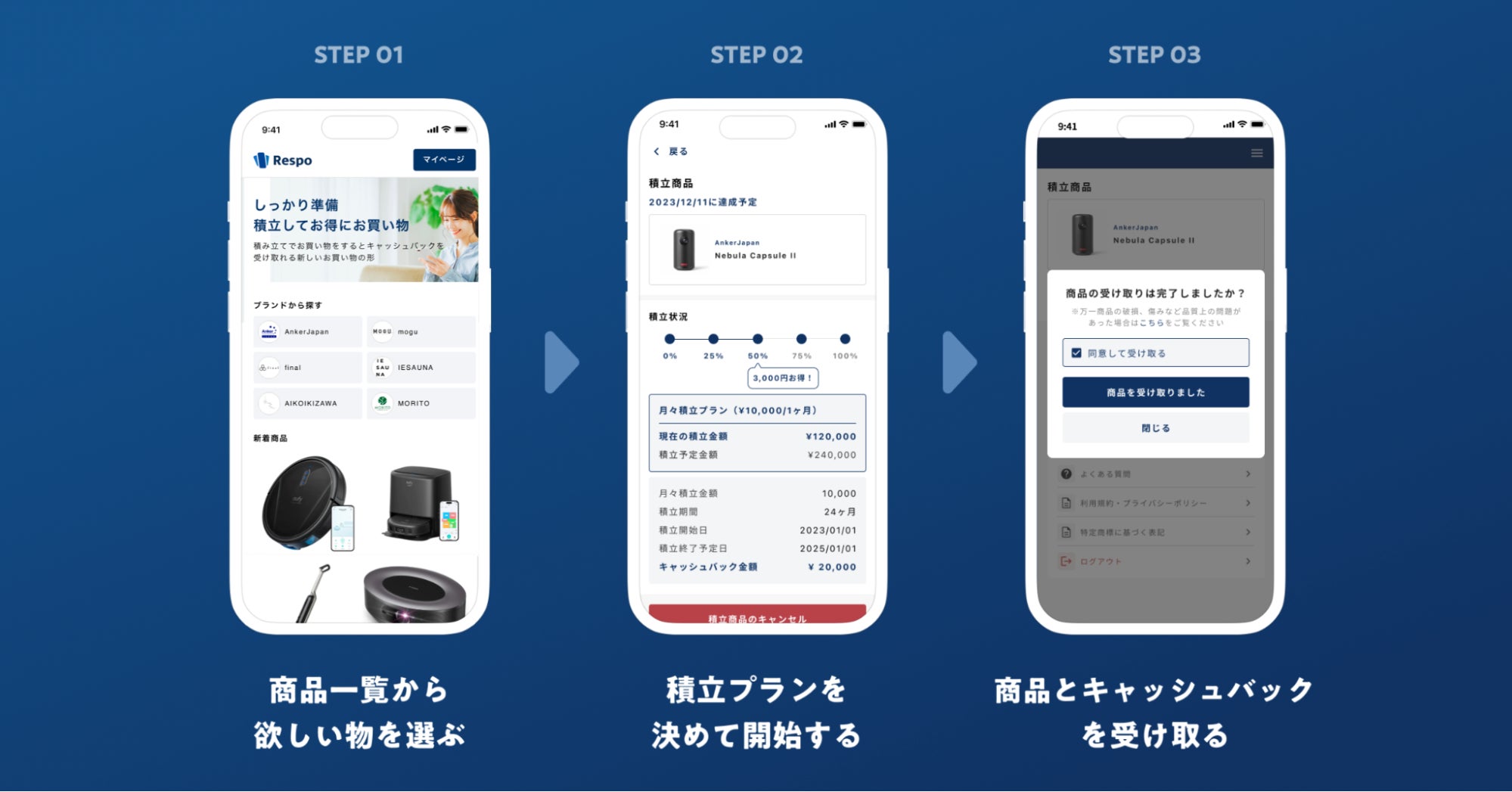 株式会社リスポ(所在地:東京都渋谷区、代表取締役:黍田龍平)は、ライフイベントに合わせて毎月一定金額を積立て購入することで、商品をお得に購入できる「積立購入ECサイト『Respo(リスポ)』」を2024年1月10日(水)より提供開始しましたことをお知らせいたします。なお、β版では約3ヶ月で延べ150名の利用ユーザーに活用され、900万円を超える積立てが行われました。