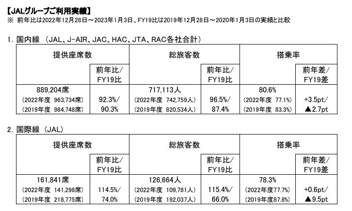 2023年度年末年始期間(2023年12月28日~2024年1月3日)における、JALグループ航空会社便のご利用実績を取りまとめましたので、ご報告します。