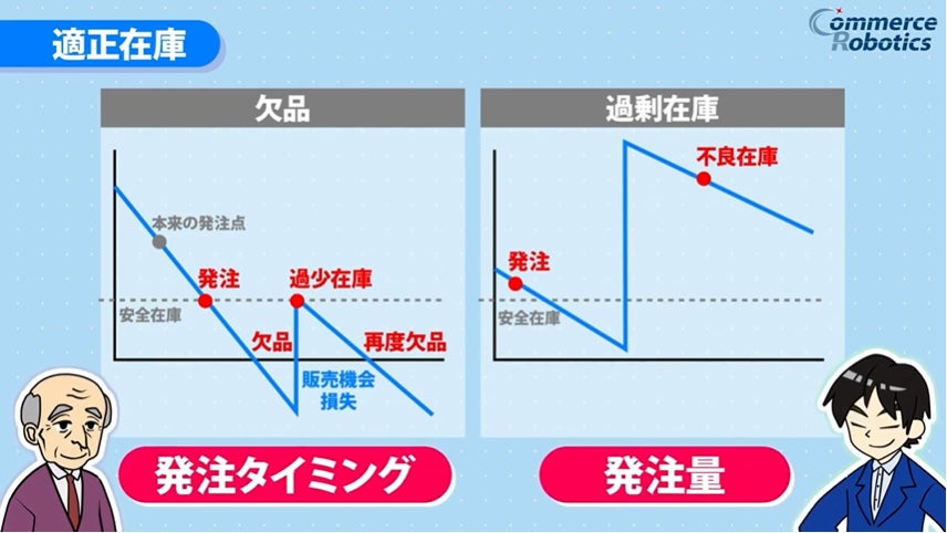 発注タイミングと発注量を最適化して、欠品と過剰在庫の間でオペレーションします。