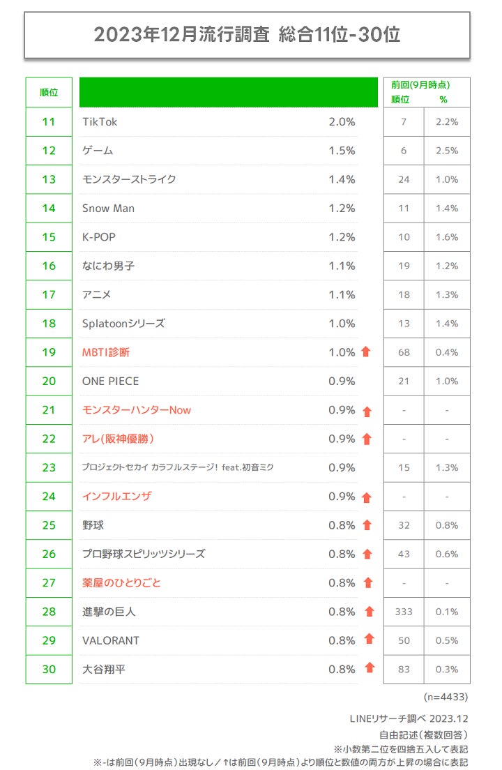 ※2 『2023年流行った ヒト、コト』調査:https://lineresearch-platform.blog.jp/archives/43895542.html