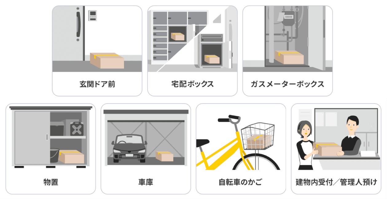 本キャンペーンでは、ユーザーが置き配選択可能なストアで注文した際に置き配を指定すると、1注文ごとに10円相当のPayPayポイントが付与されます。置き配とは、ユーザーが受け取りに都合の良い場所を指定すると、不在時や非対面を希望する場合などに活用可能な配送方法です。置き配場所として、玄関ドア前や宅配BOX、ガスメーターBOX、物置、車庫、自転車のかごなどから選択が可能です。(※ご自宅の敷地内に限る)