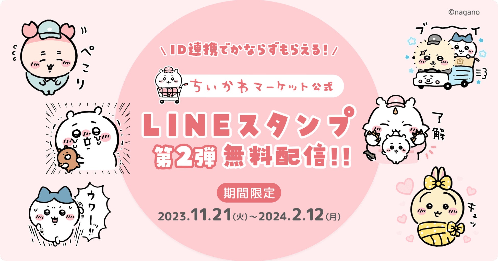 ▼ID連携でかならずもらえる!ちいかわマーケット公式のLINEスタンプ 紹介ページ