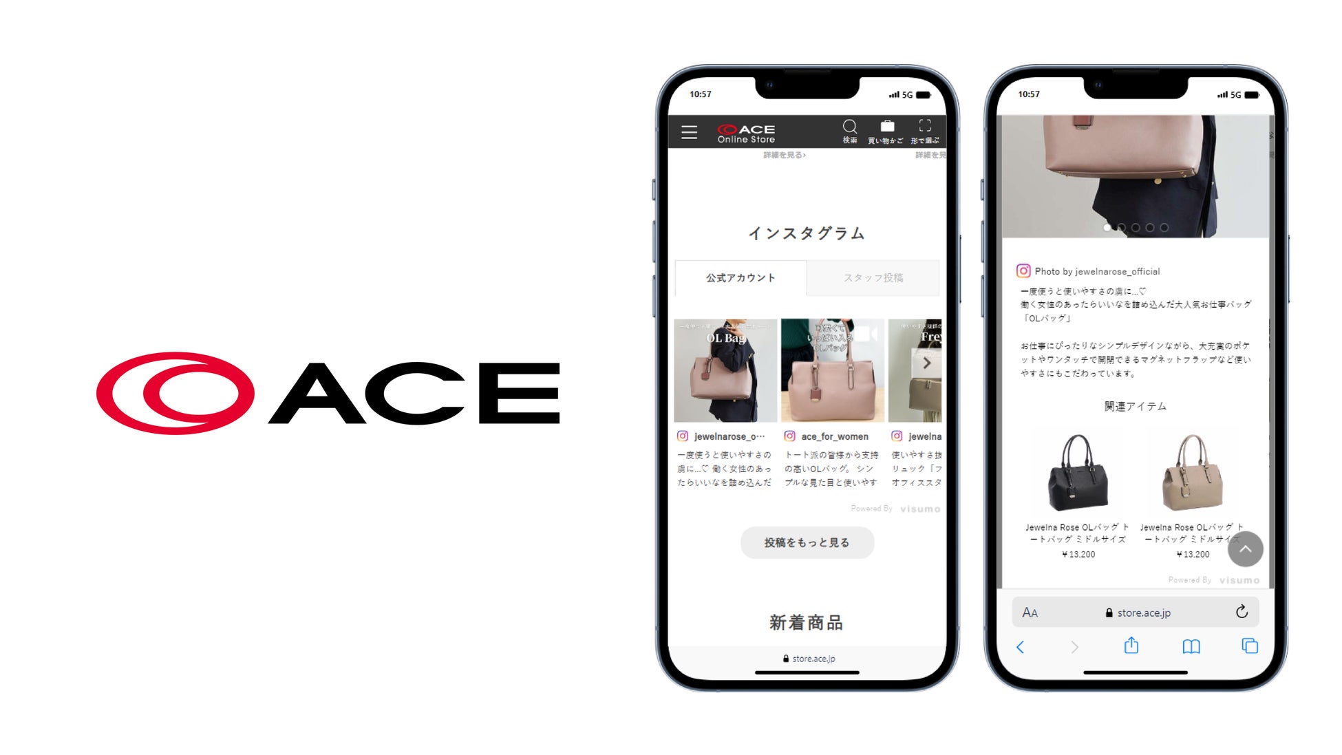 ビジュアルマーケティングプラットフォーム「visumo(ビジュモ)」を提供する株式会社visumo(東京都渋谷区 代表取締役 井上 純)は、エース株式会社(東京都渋谷区 代表取締役社長 森下 宏明)が運営する「ACE Online Store」にてvisumo social/visumo videoが採用、リリースされたことをお知らせいたします。