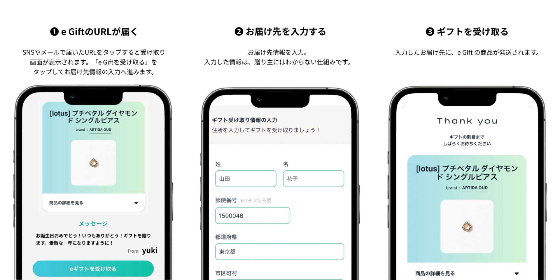 入力したお届け先に、e Gift商品が配送されます。