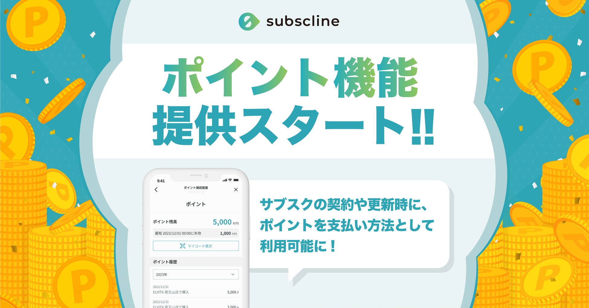 株式会社サブスクライン(本社:東京都渋谷区、代表取締役:石川勝己)は、顧客と店舗のニーズに応えるため、ポイント機能を新たに導入しました。