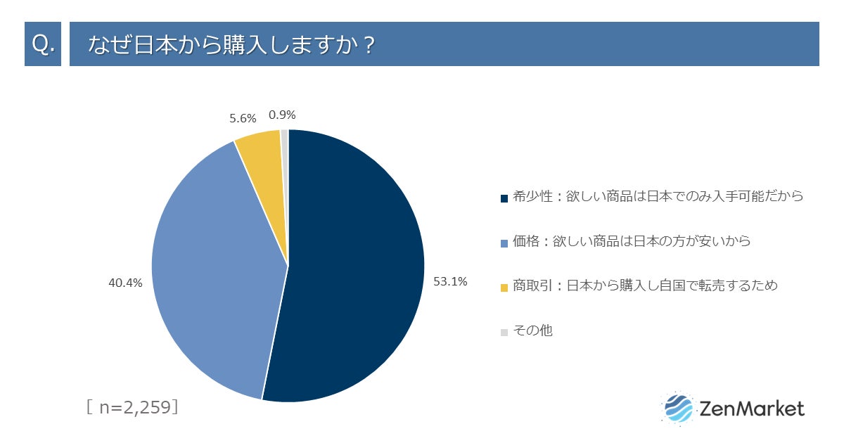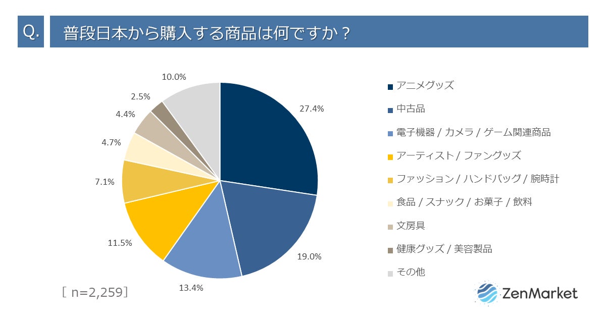 越境ECをトータルで支援するZenGroup株式会社(所在地:大阪府大阪市)が運営する海外向け購入代行サービス「ZenMarket」は、購入代行サービス「ZenMarket」を利用されている海外のお客様2,259名に「海外からの購入動向とオンライン購入ニーズ」に関するアンケートを実施しましたので、お知らせいたします。