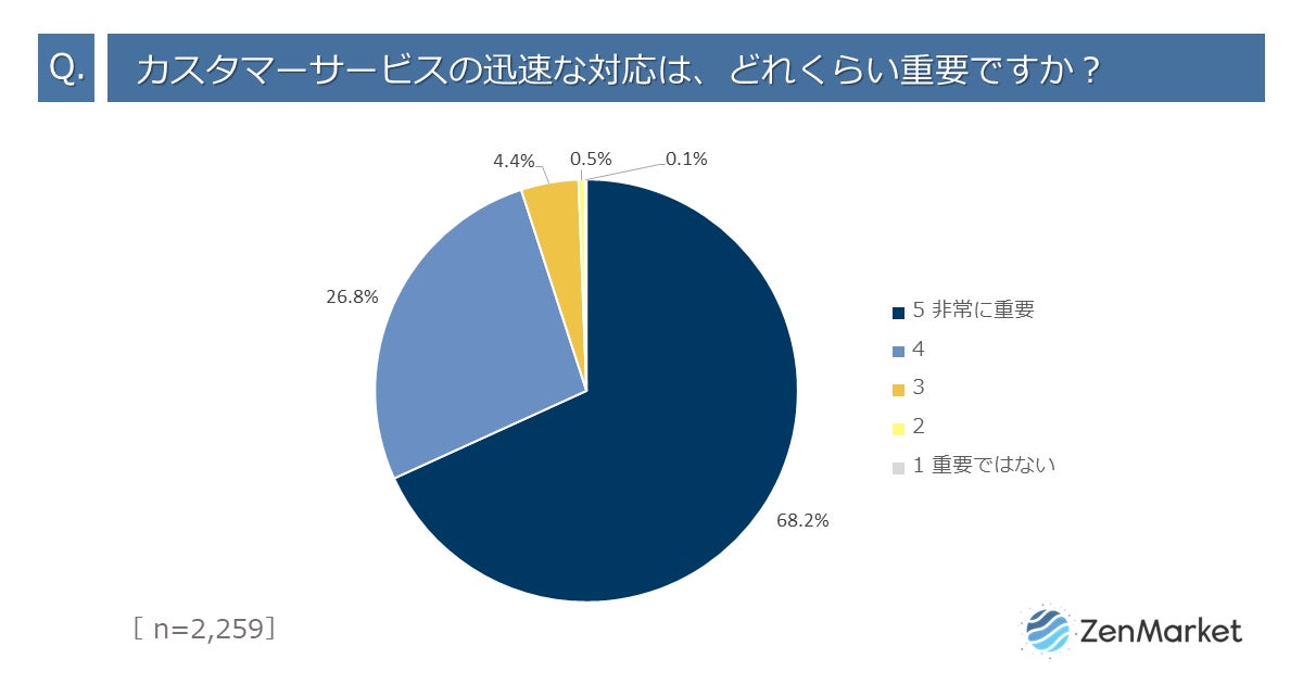 海外ユーザーが求めるカスタマーサービスのクオリティとして「スピード」があげられます。68.2%の海外ユーザーはカスタマーサービスの迅速な対応に大きな関心を寄せています。