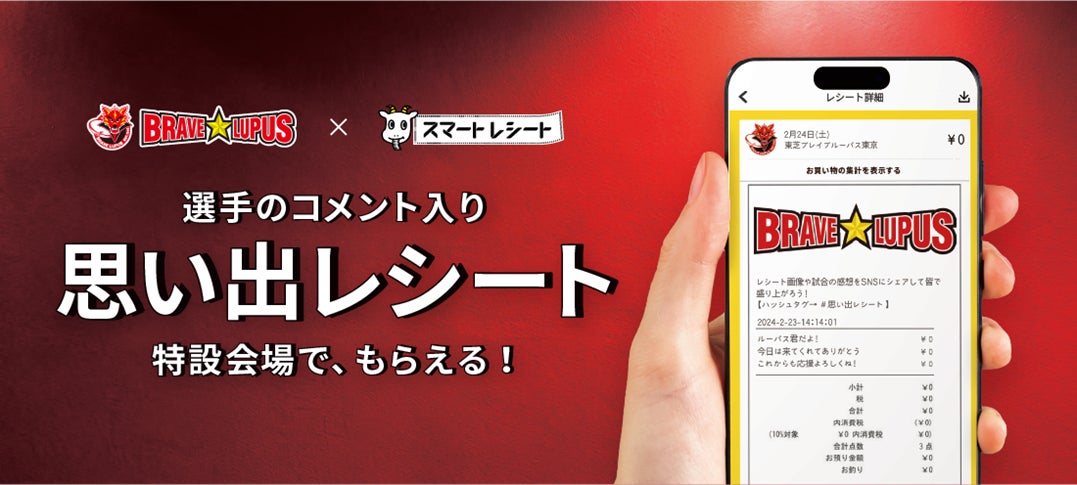 東芝テック株式会社(本社:東京都品川区、代表取締役社長:錦織弘信、以下「東芝テック」)、東芝データ株式会社(本社:東京都港区、代表取締役CEO:北川浩昭、以下「東芝データ」)は、2024年2月24日に開催される「NTTジャパンラグビー リーグワン2023-24」第7節において、東芝ブレイブルーパス東京株式会社(本社:東京都府中市、代表取締役社長:荒岡義和、以下「東芝ブレイブルーパス東京」)と共同で、電子レシートアプリ「スマートレシート®」を利用し、ラグビークラブ「東芝ブレイブルーパス東京」の選手コメント入り電子レシート「思い出レシート」を特設会場にて発行します。この取り組みにより、多くのラグビーファンが新しい「推し活」体験を楽しむことが期待されます。