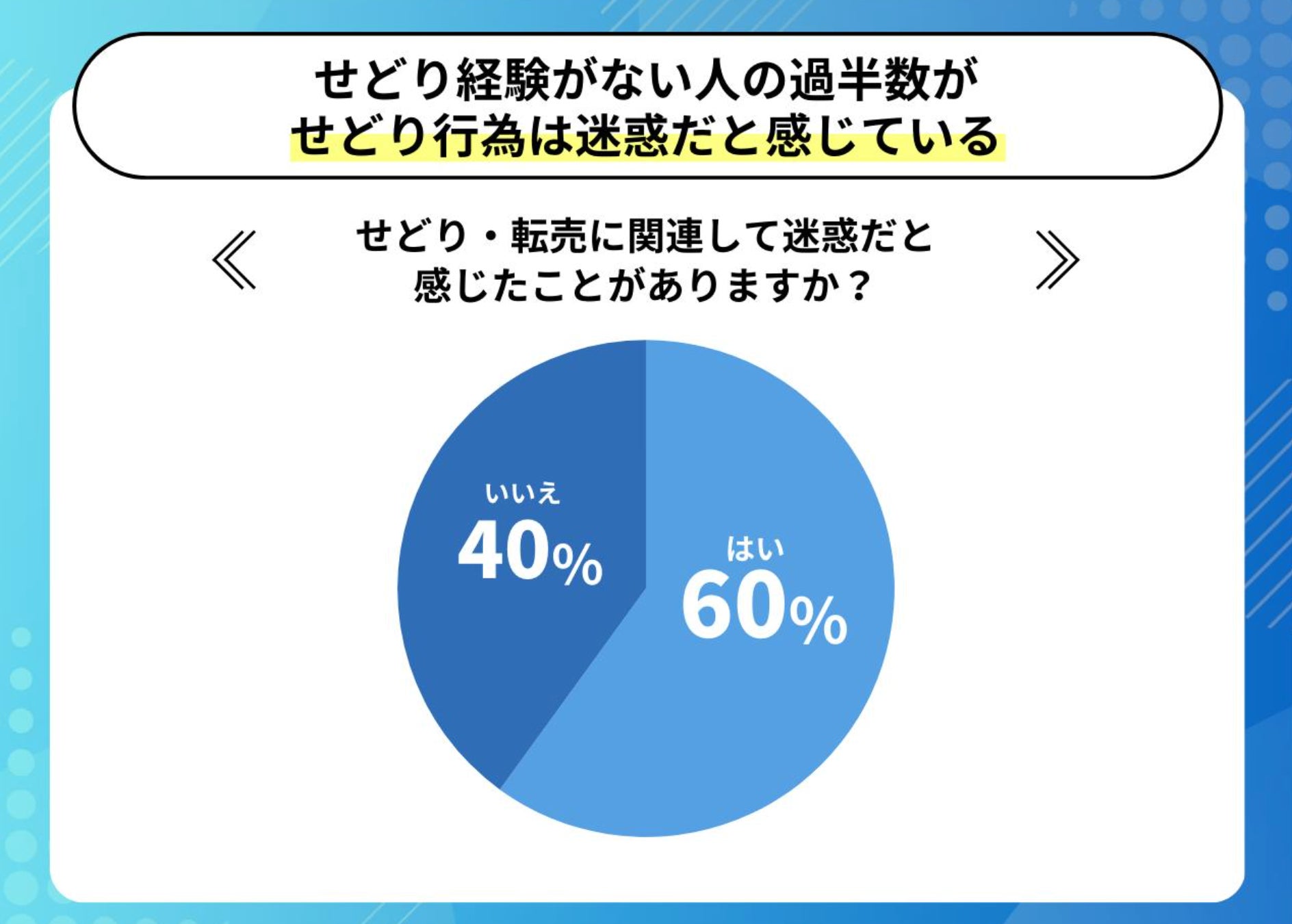 ・せどり・転売に関連して迷惑だと感じた経験があると回答した人は60.0%、ないと回答した人は40.0%という結果になりました。