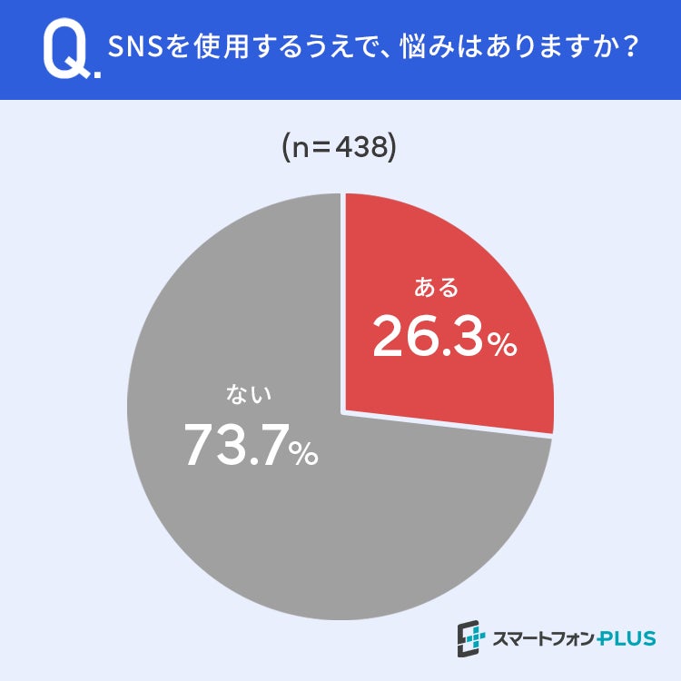 26.3%の方が、SNSを利用する上で悩みが「ある」と回答しています。