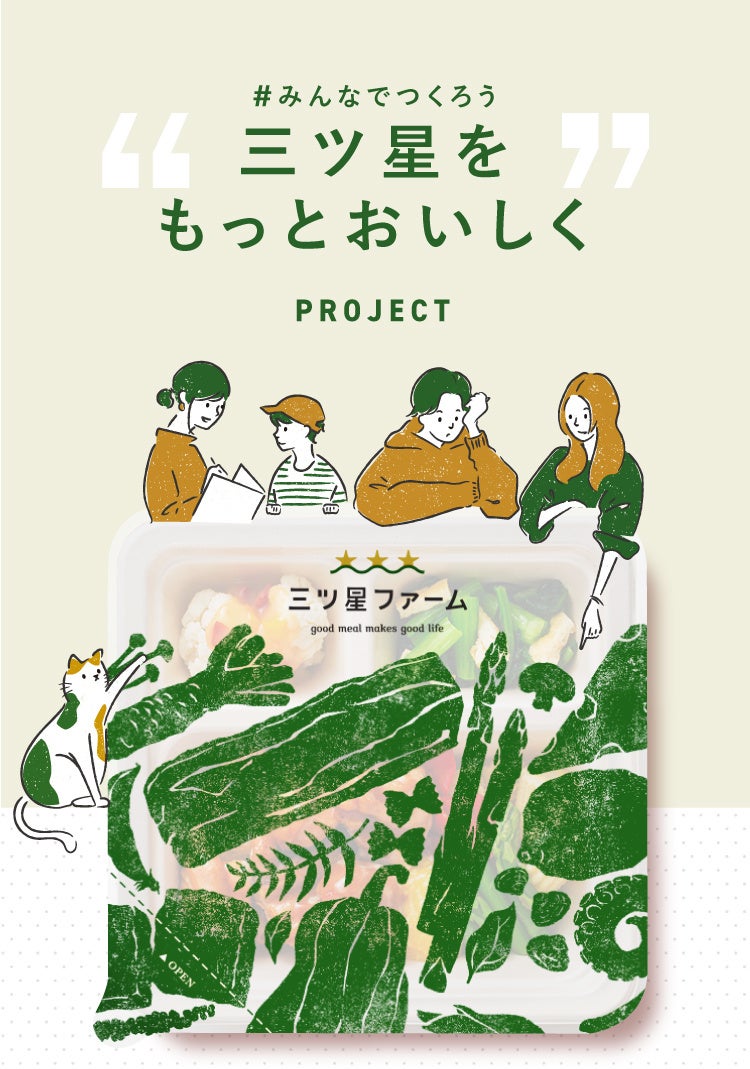 サービス開始から約2年半、「三ツ星ファーム」はお客様からいただいた様々なご意見をもとに、商品開発やキャンペーン等を実施してきました。“お客様と一緒に作り上げるブランド”としてさらなる進化を目指し、2月より新たなメニュー作りの形として、お客様と一緒にメニュー開発を行う“三ツ星をもっとおいしく”プロジェクトを発足しました。お客様との議論を重ね、3つのコンセプトを決定。3か月連続で販売します。