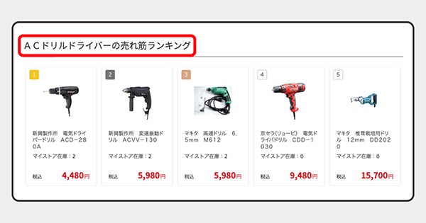 - 売れ筋ランキングの表示でサイト回遊率アップに寄与