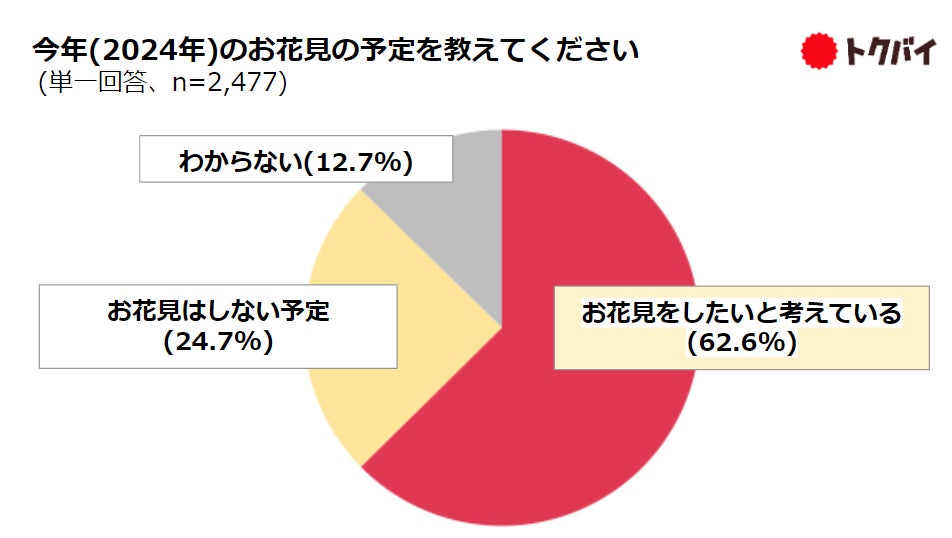 くふうカンパニーグループにおいて、チラシ・買い物情報サービス「トクバイ」を運営する株式会社ロコガイド(以下「ロコガイド」)は、「トクバイ」ユーザー2,477名を対象に「お花見」に関する調査を実施しました。