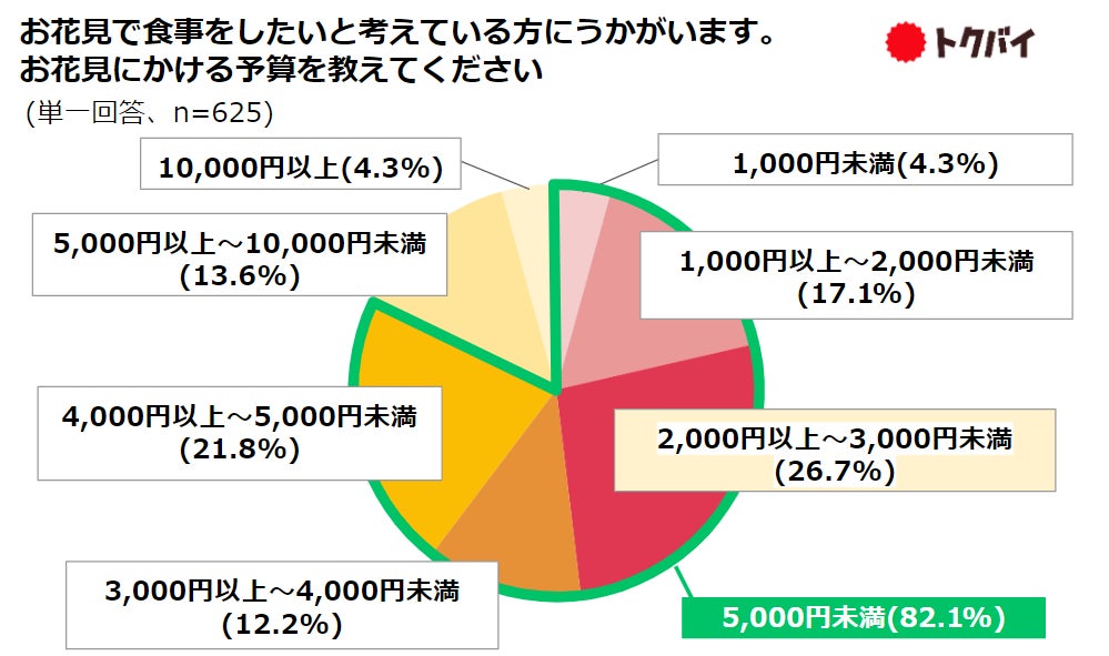 - お花見で食事をしたい人は4割以上。予算は2,000円以上~3,000円未満の価格帯が最多
