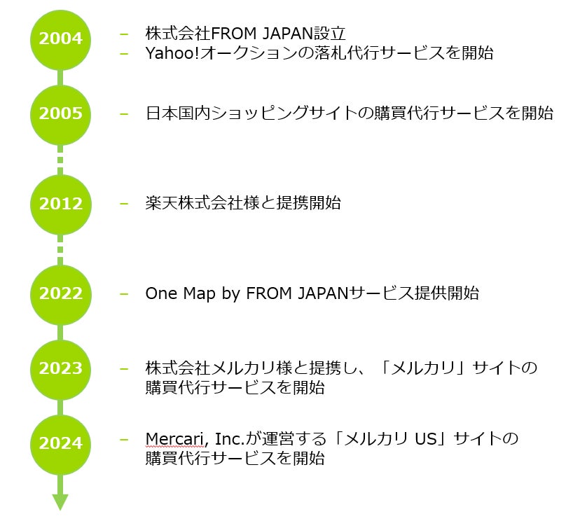 FROM JAPANは日本発の越境ECサイトとして、2004年から革新的なサービスの提供を通じて、日本中の魅力的な商品を世界中へ、お客様の生活をより豊かにするために届けてきました。2022年にはFROM USAのサービスも新たに開始し、名称を「One Map by FROM JAPAN」としました。今でも私達のサービスは日々進化を続けております。