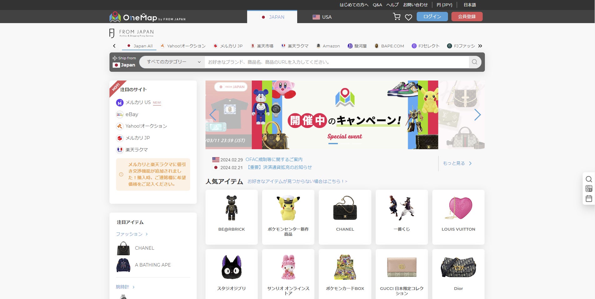 サービスサイト「One Map by FROM JAPAN」では、2024年3月18日に「20周年記念特設サイト」をオープン!20周年の感謝を込めて、日本・米国で販売されている商品がお求めやすくなるクーポン施策や、プレゼントキャンペーンを年間を通して実施いたします。
