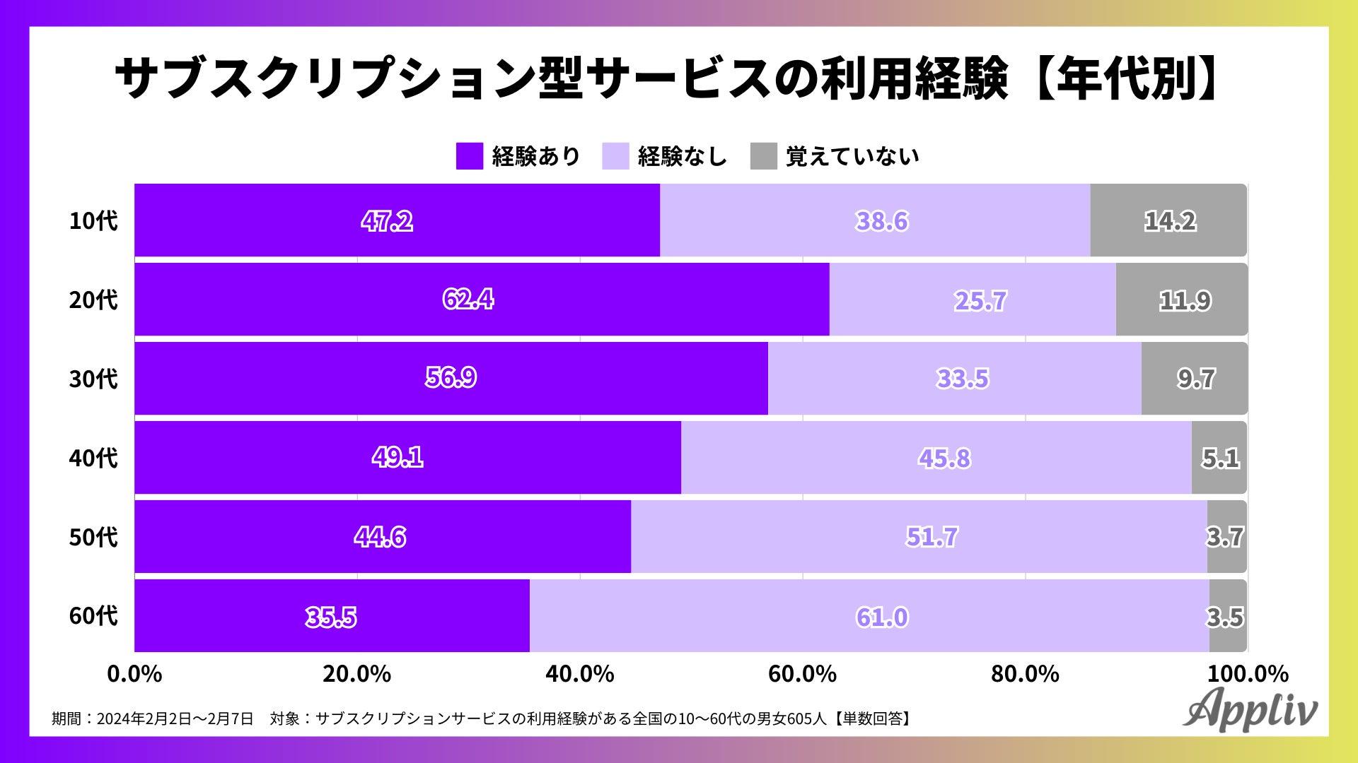 調査対象:サブスクリプションサービスを利用したことがある10~60代の男女605人