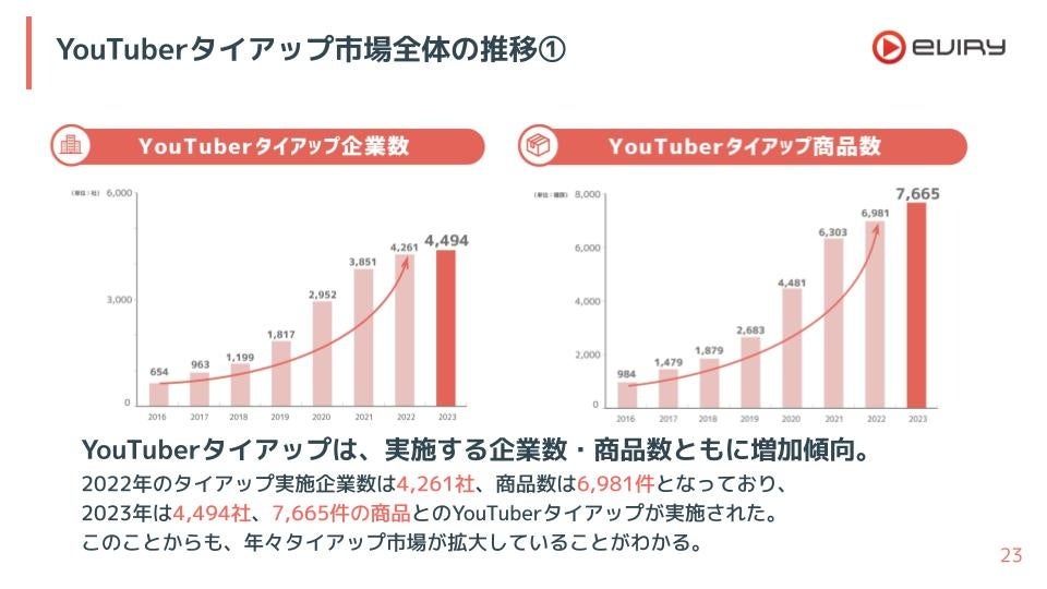 視聴者の拡大に伴い、多くの企業が注目し、企業とYouTubeチャンネルのタイアップや、自社チャンネルの運用が年々増加し続けています。