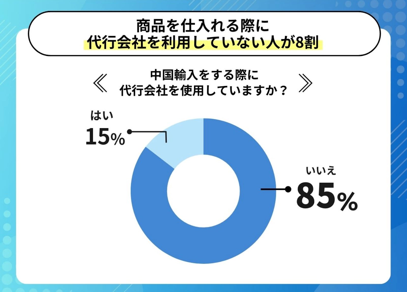 「いいえ」と回答した89.0%は、個人でサイトから商品を仕入れていると言えます。また「はい」と回答した15.0%はなぜ代行会社を使用しているのでしょうか。