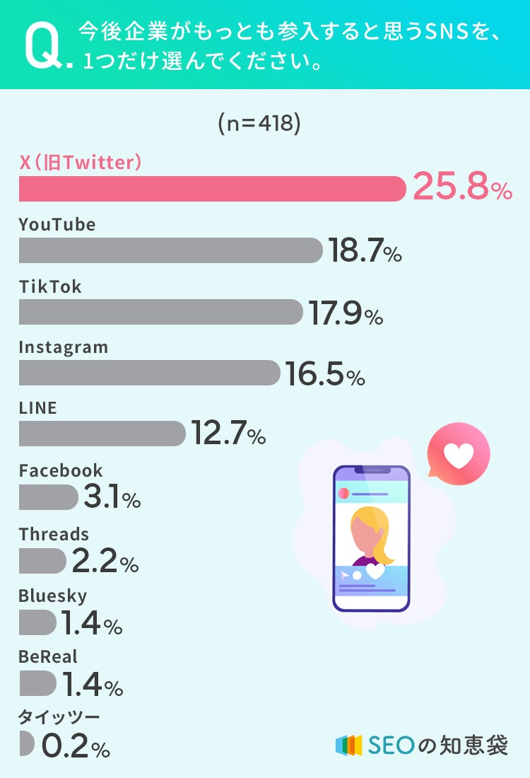 ■今後企業がもっとも参入すると思うSNS、25.8%が「X(旧Twitter)」