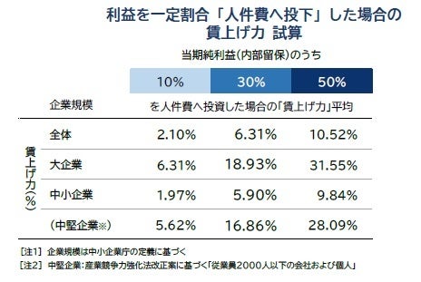 - 企業が持つ潜在的な「賃上げ力」、「利益の3割」人件費への投下で6%アップ相当試算