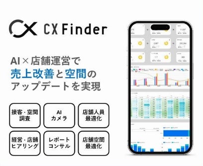 「CXFinder」はLMIグループが提供する店舗DXを進めるコンサルティングサービスです。経営者や店舗スタッフらとの対面によるヒアリングを重ね、最適なKPIの設置から、ミステリーショッパーの導入、AIカメラ設置などによるデータ取得など、感性データと定量データを掛け合わせた戦略的な打ち手の提案を行い、お客様と共に並走しながら店舗空間の最適化を目指します。