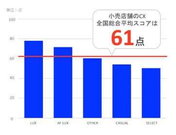 全国のCX平均スコアは60点台前半、ブランドカテゴリーごとに高低差がはっきりと見える結果に