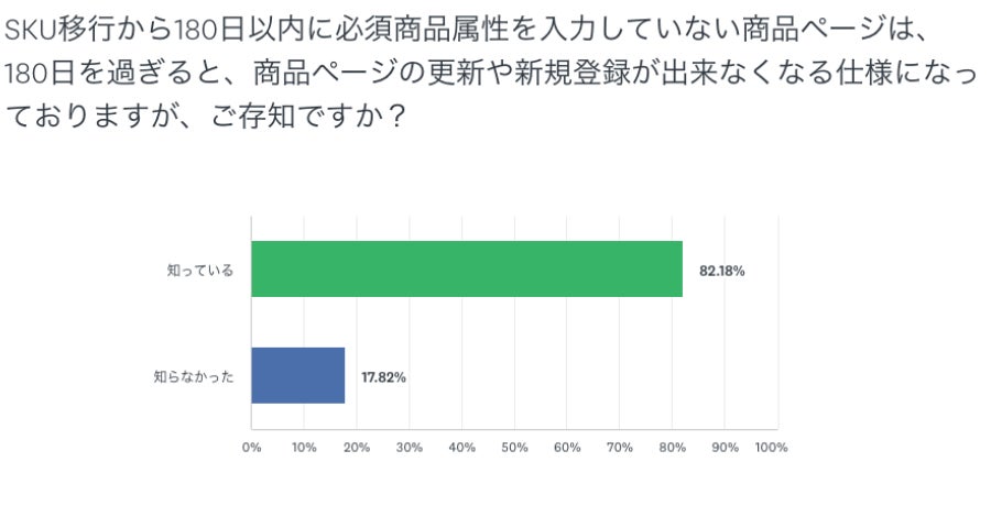 今回の調査ではECマスターズクラブ内でも180日以内の必須商品属性の登録の話題を上げていることが影響していたのか約8割以上が「知っている」という結果になりました。