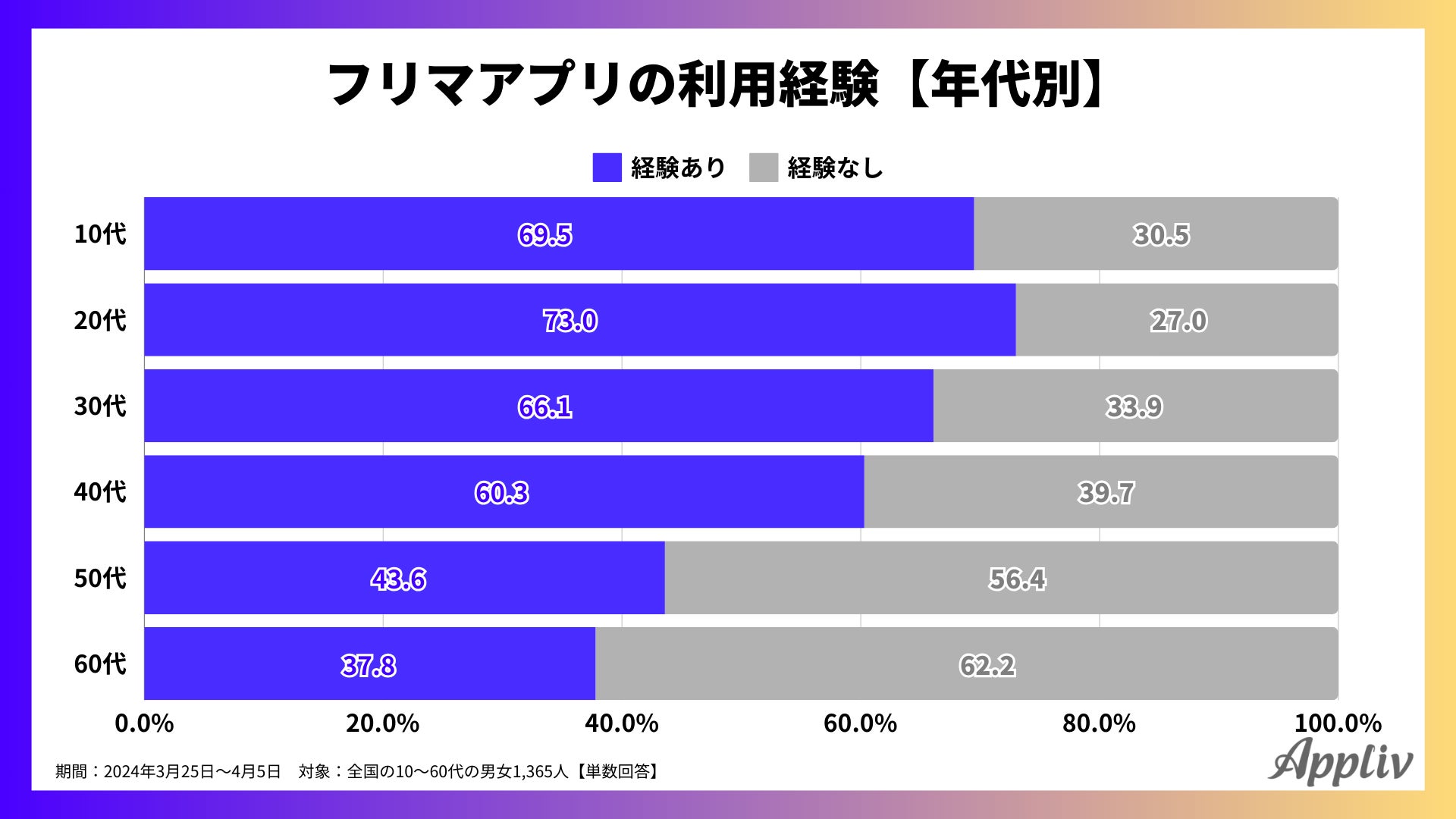 Appliv編集部では、全国の10~60代男女1,365人を対象に、フリマアプリに関するアンケート調査を行いました。