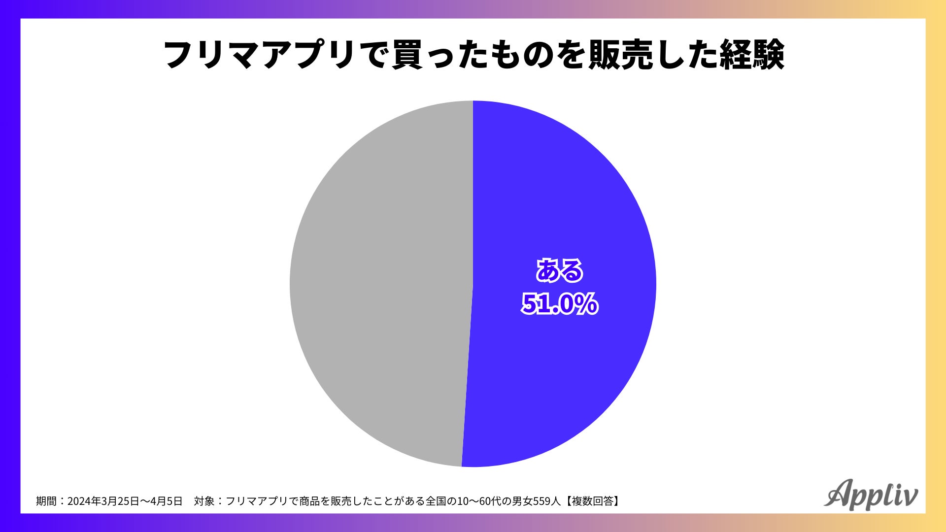 続いて、過去にフリマアプリ経由で購入した商品を出品したことがあるかを調査した結果、51.0%が「経験がある」と回答していました。
