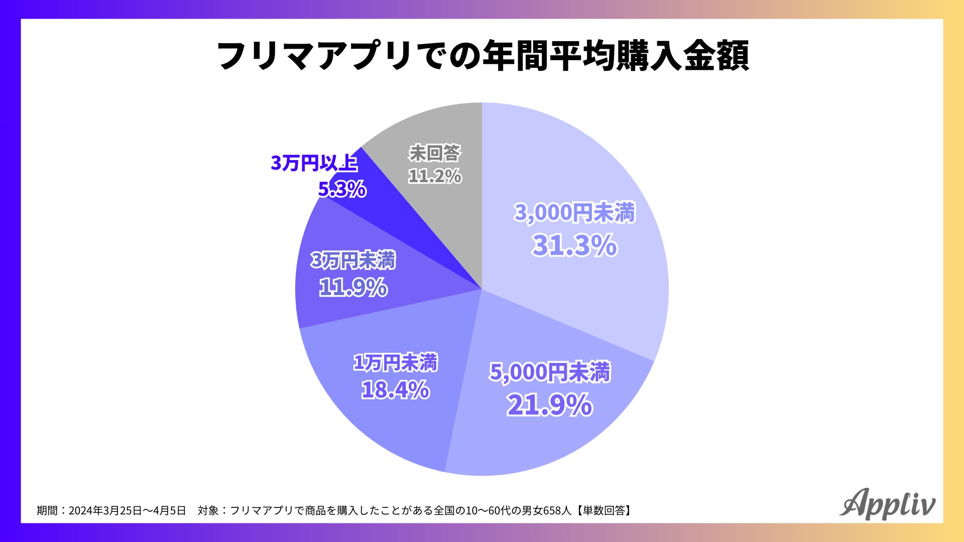 - フリマアプリの年間平均購入金額、53.2%が「5,000円未満」