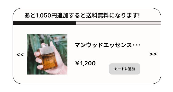 商品追加して、無料送料ラインに到達していない場合に、商品レコメンド提案(※)を行う機能となります。