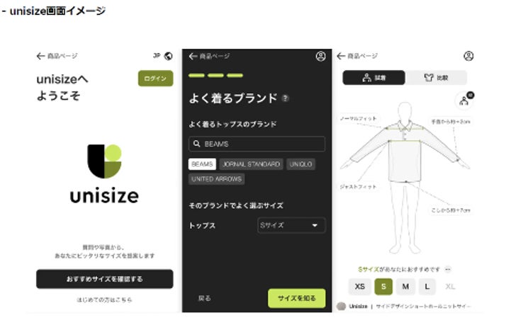 unisize(https://cl.unisize.makip.co.jp/)はネットで洋服やバッグなどを買うときに、より身体に合ったサイズを推奨するサイズレコメンドエンジンです。国内外の洋服ブランドを対象とした多量な洋服・グッズのサイズデータを有し、入力されたユーザーの身体情報、特徴を元に最適なサイズを推定する独自のアルゴリズムでレコメンドを行っております。(特許取得済み)