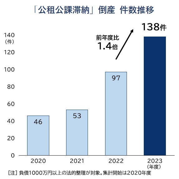 1. 社会保険料・税金などの「公租公課滞納」倒産が急増 2023年度は138件、過去最多に