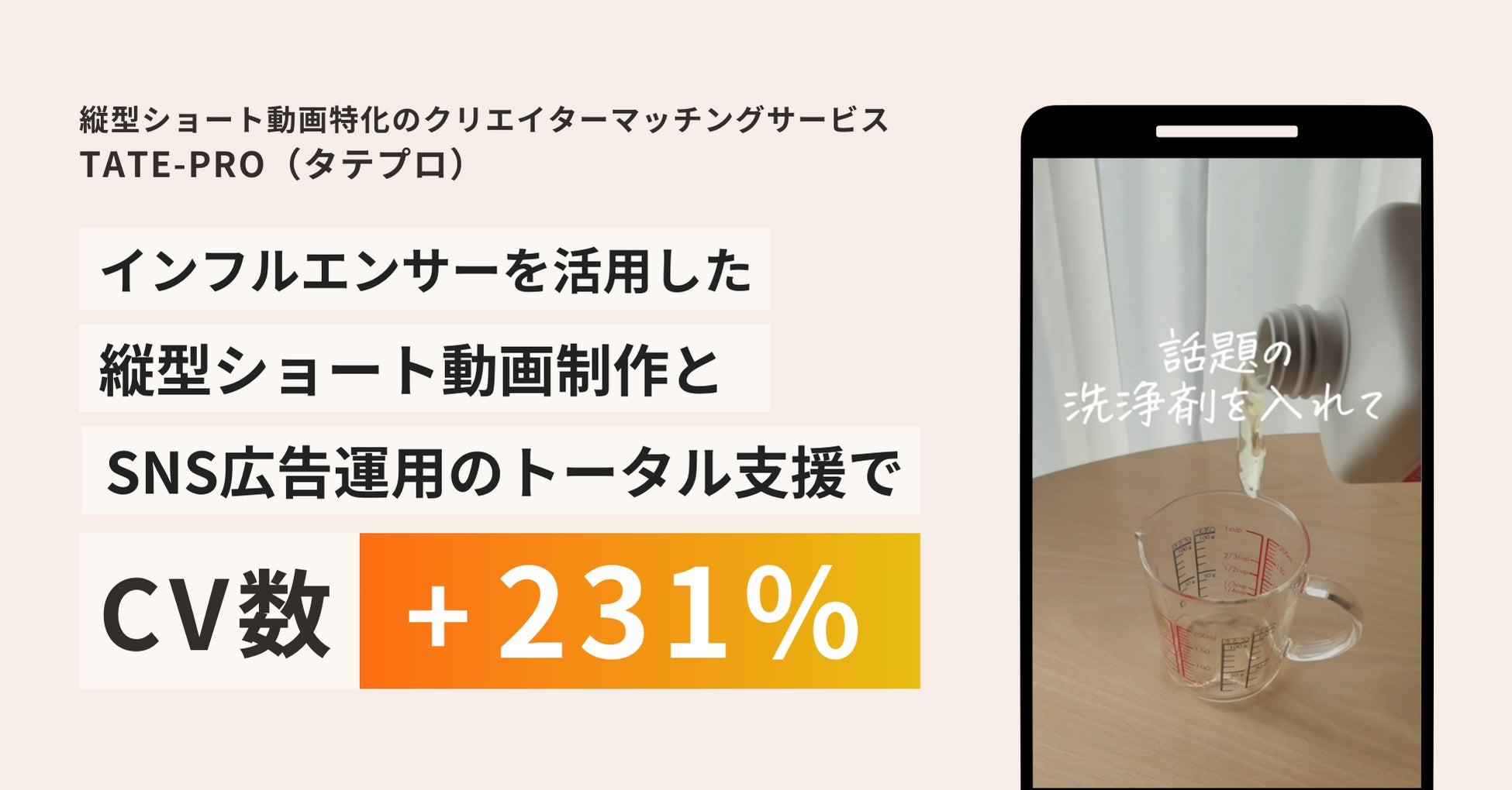 そこで、広告の効果検証に必要な縦型ショート動画を低コストかつ手軽に調達できる手段として、TATE-PROを採用いただきました。