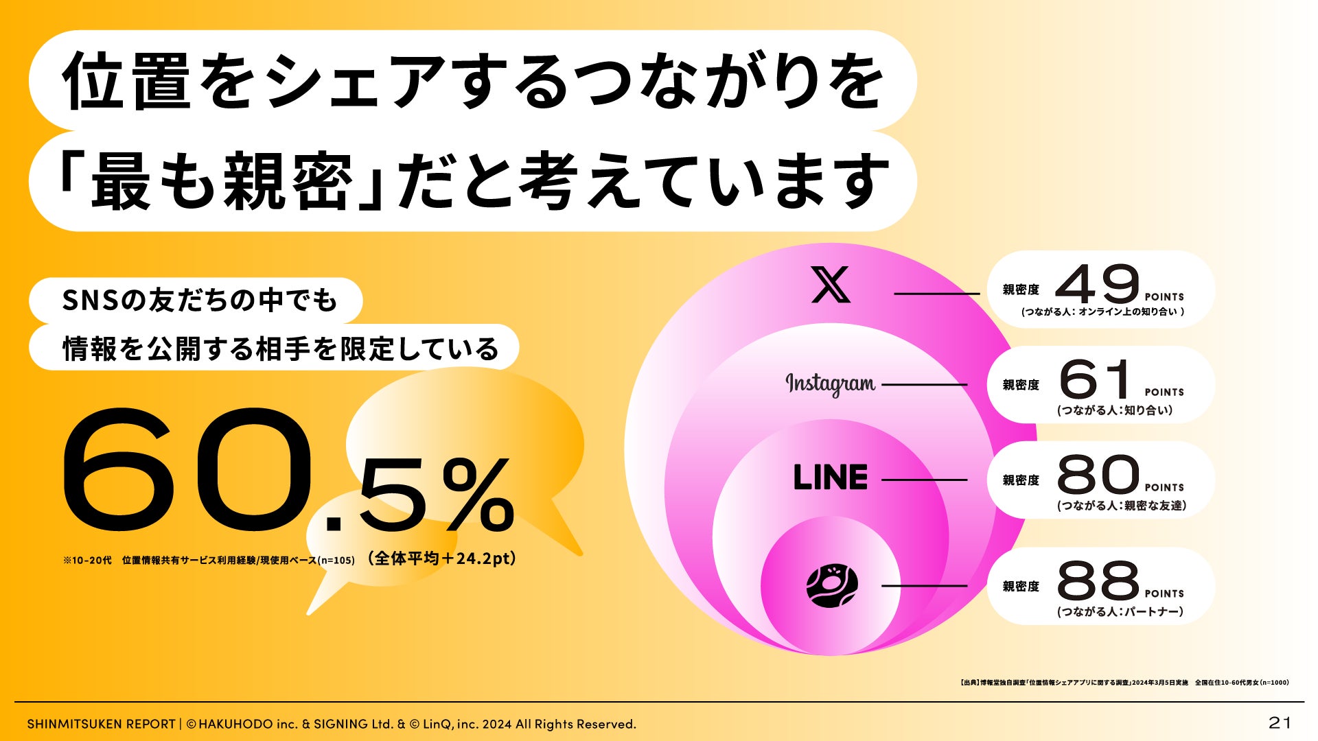 ・位置シェアラーにとって、位置をシェアする繋がりが「最も親密」