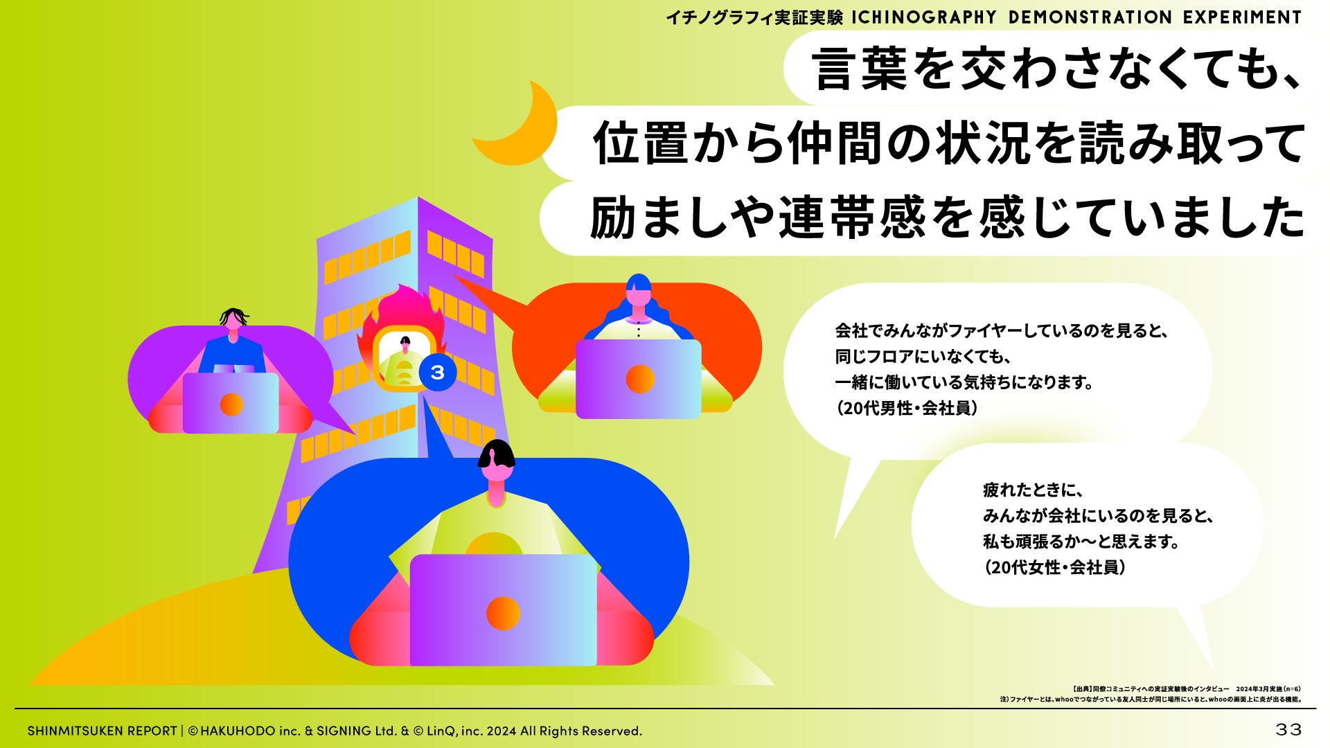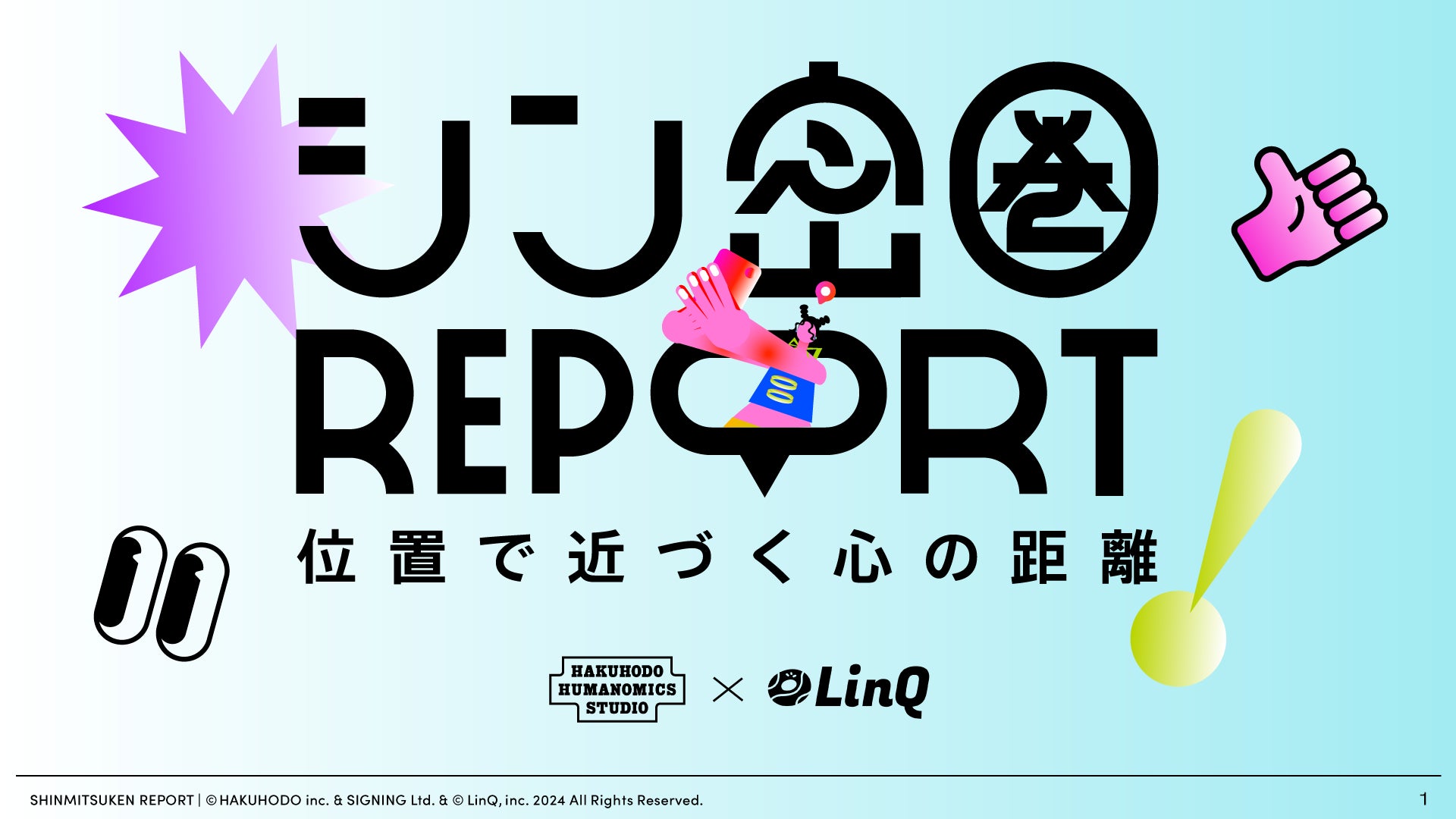 株式会社博報堂、博報堂DYグループの株式会社SIGNINGは、生活者発想で経営を考える研究開発・社会実装プロジェクト「HAKUHODO HUMANOMICS STUDIO」の活動の第四弾として、1,500万以上DLされている位置情報共有サービス「whoo your world」を運営する株式会社LinQを共同研究パートナーとして「シン密圏プロジェクト」を発足し、本日レポートを発表しましたのでお知らせいたします。