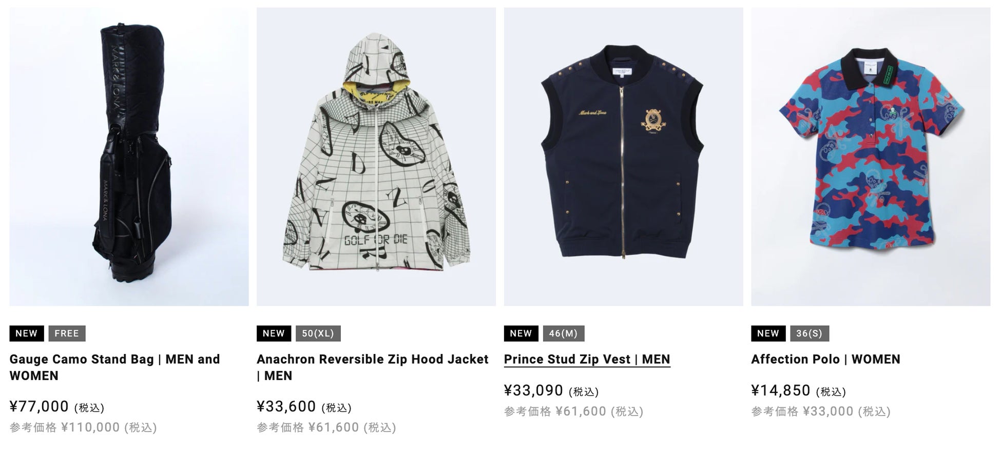 販売商品:MARK & LONAのアパレル、キャディバッグ、小物類中心(アンダーウェアなどは対象外)