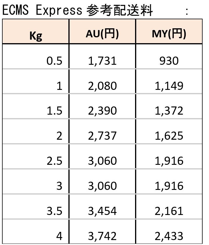 配送日数目安 : オーストラリア:5~10日、マレーシア:7~11日