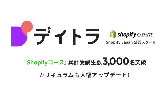 教育事業者として日本で唯一(※1)「Shopify Experts(※2)」の認定を受けているオンラインスクール「デイトラ」を運営する株式会社デイトラ(本社:東京都豊島区、代表取締役:大滝 昇平、以下:デイトラ)は、「デイトラ」が提供する「Shopifyコース」の累計受講生が3,000名を突破したことをお知らせいたします。