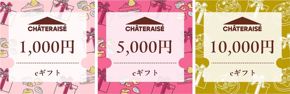 「シャトレーゼeギフト」は、「シャトレーゼ」の公式オンラインショップ限定でご購入および利用可能なデジタルチケットで、同オンラインショップでのお会計時に金券としてご利用いただけます。1,000円から20,000円までの券種をご用意しており、券面デザインは通年でどなたにでも贈っていただけるものに加え、イベントや季節に合わせたタイプもご用意しております。「シャトレーゼ」公式オンラインショップで購入したギフトは、ご家族やご友人にLINEやメールなどでお贈りいただけます。