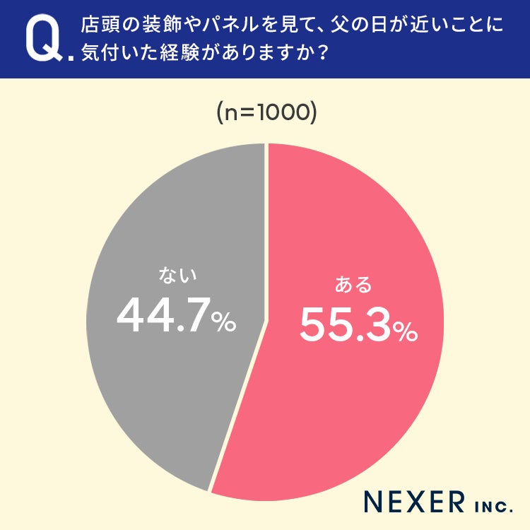 ■55.3%が、店頭の装飾やパネルを見て「父の日が近いことに気付いた経験がある」
