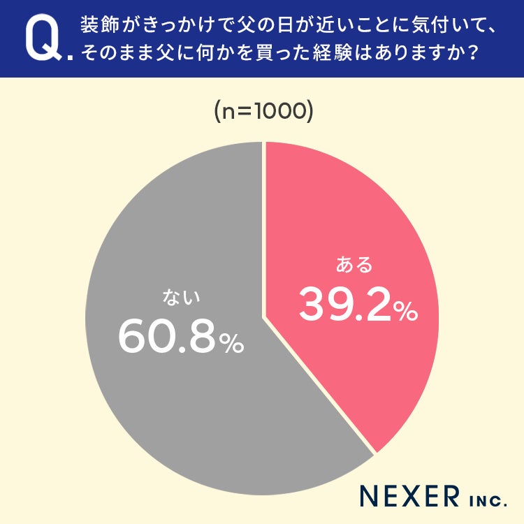 ■39.2%が、装飾がきっかけで父の日が近いことに気付き、父に何かを買った経験が「ある」